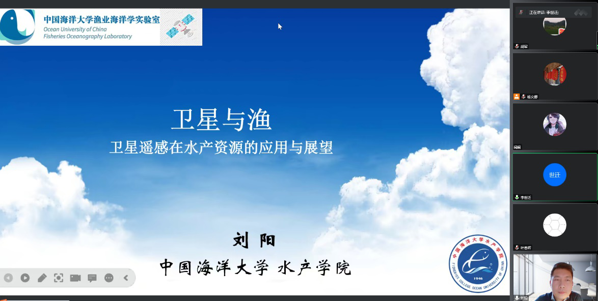 刘阳教授以丰富的研究案例,就“全球变化背景下渔业海洋学的科学问题”“遥感在气候变化、生态系统及渔业生产的作用”和“遥感在渔业及水产养殖中的应用”等问题展开阐述,并与师生深入交流。