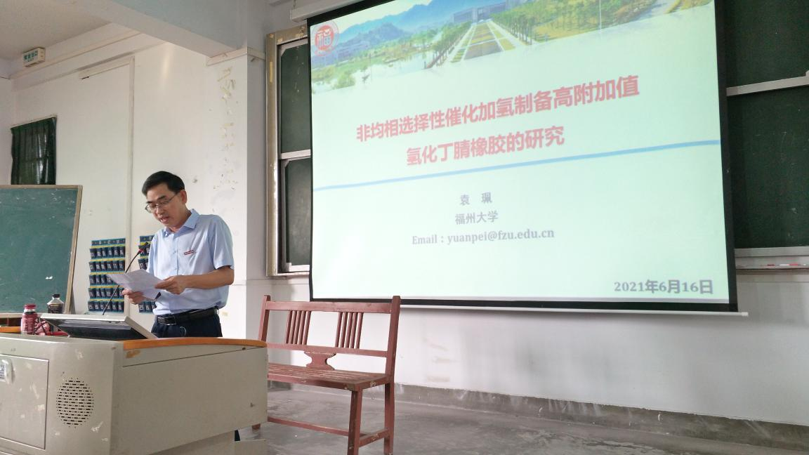 袁教授从项目立项、研究目的、主要研究进展及创新点等方面,分享了她的课题组近几年围绕国家经济主战场和区域经济重大需求,在非均相选择性催化加氢制备高附加值氢化丁腈橡胶方面的研究过程和成果。学术报告后,袁教授同与会师生进行了深入的交流。