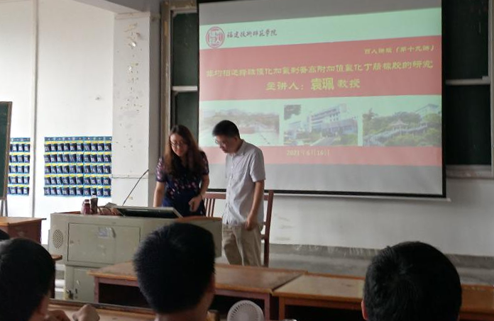 袁教授在教学楼401为材料与环境工程学院师生做了《非均相选择性催化加氢制备高附加值氢化丁腈橡胶的研究》的学术报告,这也是我校第十九期“百人讲坛”系列学术活动。